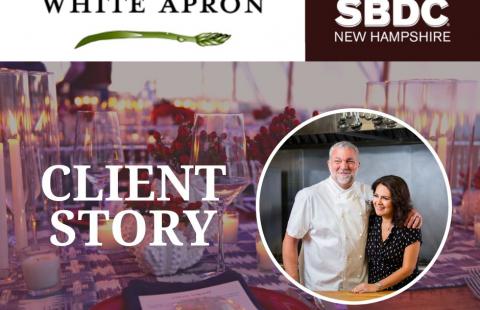 NH SBDC last told our followers about The White Apron in September 2020. Pandemic closures hit them hard, but they were starting to bounce back from that incredibly challenging time. Liz and Jay were just seeing that they would be able to remain in business, and they were grateful for PPP and EIDL funds. For that story, visit https://www.nhsbdc.org/blog/2020/09/catering-covid-19-back.