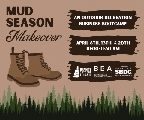 Mud Season Makeover is co-hosted by NH SBDC, Granite Outdoor Alliance, and the NH Office of Outdoor Recreation Industry Development.