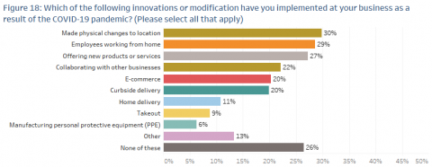 Respondents also reported innovations and modifications that their business has implemented due to COVID-19 with more